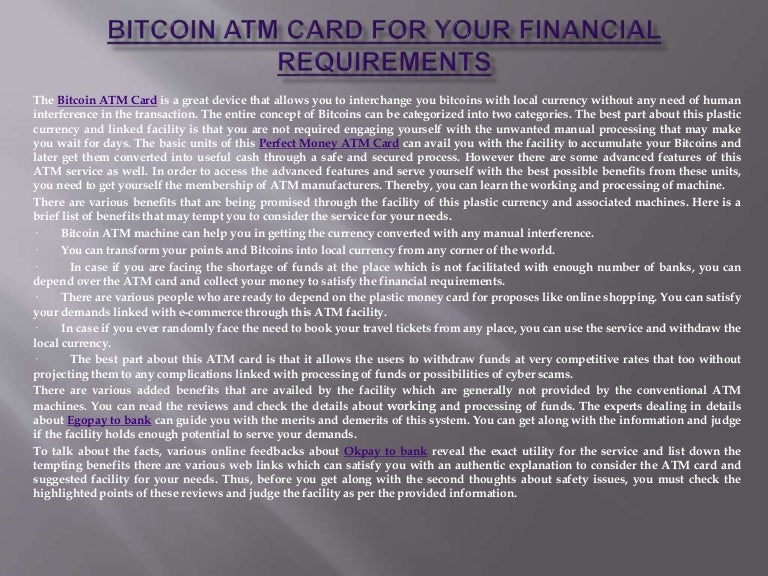 Bitcoin Atm Card - Funds From Your Blockchain Wallet Will Be Loaded To Your Bitcoin Atm Card.