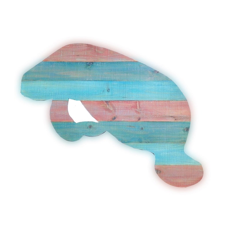 Manatee hand carved painted palm tree frond fish animal ... from i.ebayimg.com