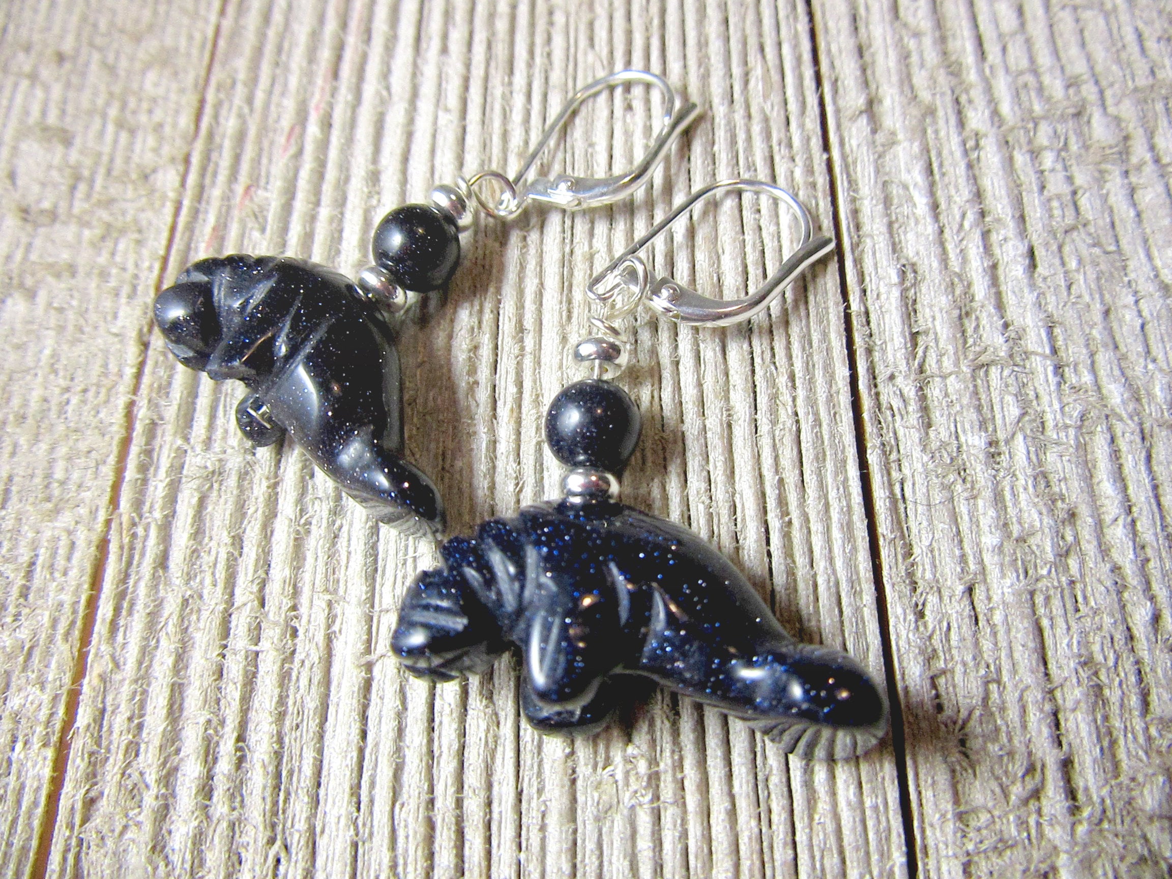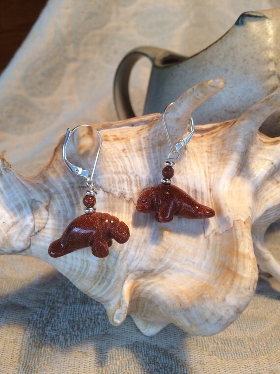 Manatee Carved - Manatee Carved Stone Earrings Goldstone Drop Earrings | Etsy